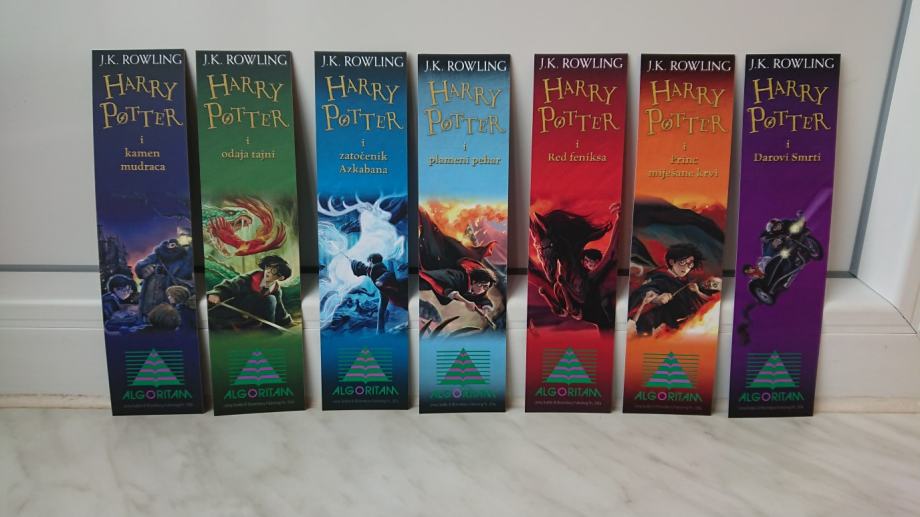 Bookmarkeri tj označivači stranica su dvostrani, dizajnom prate svaki pojedinu knjigu mekog uveza, skupljani su kako su knjige izlazile, cijena je za komplet od svih 7 komada.