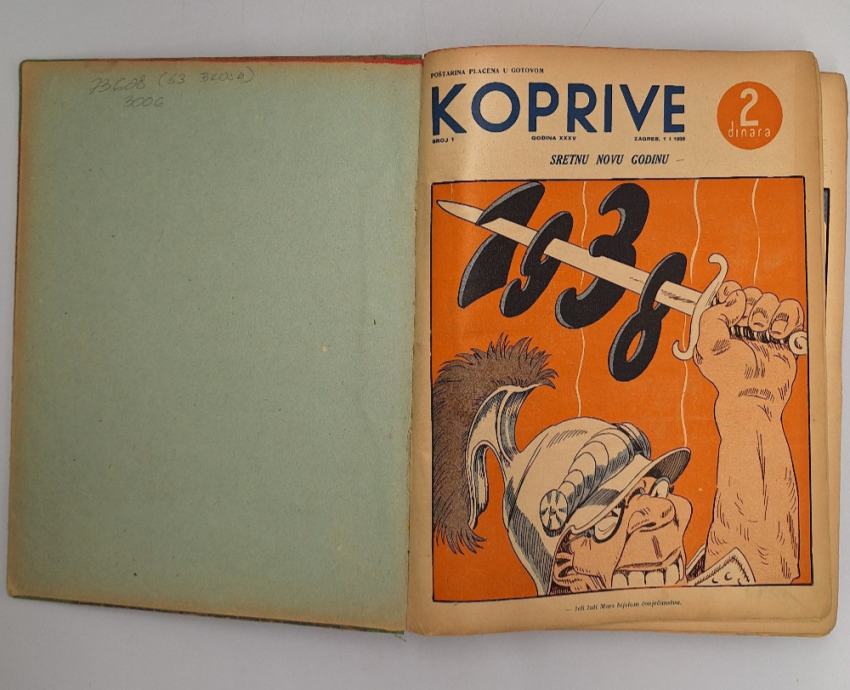 Koprive 1938. - 53 brojaUvezano godište.List za humor i satiruStranica: 635Dimenzije: 24x30Jezik: ZagrebPismo: LatinicaStanje: Vrlo dobroUvez: TvrdiGodina: 1938