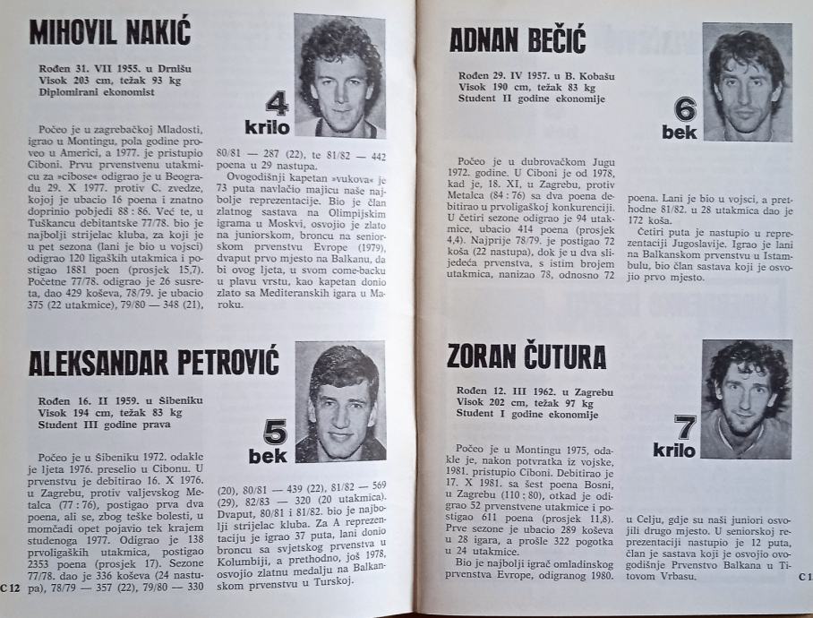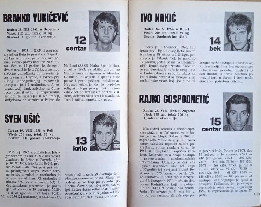 Košarkaški klub CIBONA 1983 1984 Zagreb Zoran Kovačev + ULAZNICA