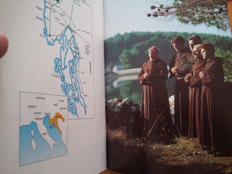 Prodajem vodič CONVENTUS FRANCISCANUS KOŠLJUN ( Franjevački samostan), otok Krk Hrvatska. Autor: Fra Jerko Valković. Teško sam slikala, jer nije otvaran, nego je samo stajao u ormaru.