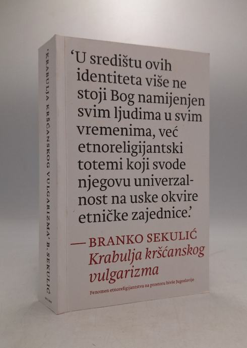 Branko Sekulić: Krabulja kršćanskog vulgarizma: fenomen etnoreligijantstva na prostoru bivše Jugoslavije‘Vrlo obrazovani i upućeni stručnjak napisao je djelo koje je vrlo nijansirano i utemeljeno na činjenicama. Ne poznajem nikoga drugoga tko bi to ovako kompetentno napisao. Iz moje perspektive, ovo je jedna od najboljih kvaliteta ove knjige: knjiga kritičkoga mislioca koji duboko, vrlo duboko i bez predrasuda zalazi u problem’. – PAUL MOJZES, Rosemont College, SAD ‘Knjiga Branka Sekulića prijelomno je istraživanje o dubokim strukturama koje su omogućile izbijanje nasilja i etničkoga čišćenja nakon propasti Jugoslavije. Sekulićeva knjiga je nezamjenjivi doprinos razumijevanja sukoba na Balkanu, no iznad svega pomirenja i daljnjega sprečavanja sukoba’. – RAINER ANSELM, Sveučilište Ludwig-Maximilian, Munchen‘Opće je poznato da je spoj etničkih i nacionalnih s kršćanskim identitetom imao važnu ulogu u sukobima na Zapadnome Balkanu. No, nedostaju teološka istraživanja o uzrocima toga spajanja. Ova knjiga ispunjava tu prazninu’. – ZORAN GROZDANOV, Sveučilišni centar za protestantsku teologiju Matija Vlačić Ilirik, ZagrebStranica: 477Dimenzije: 12.5x20Jezik: RijekaPismo: LatinicaStanje: Nova knjigaUvez: MekiGodina: 2023