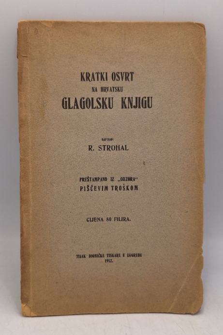 Rudolf Strohal: Kratki osvrt na hrvatsku glagolsku knjigu Stranica: 56Dimenzije: 12.5x20Jezik: ZagrebPismo: LatinicaStanje: Vrlo dobroUvez: MekiGodina: 1912
