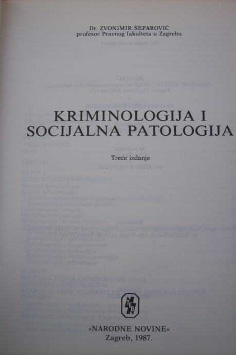 KRIMINOLOGIJA I SOCIJALNA PATOLOGIJA - Zvonimir Šeparović