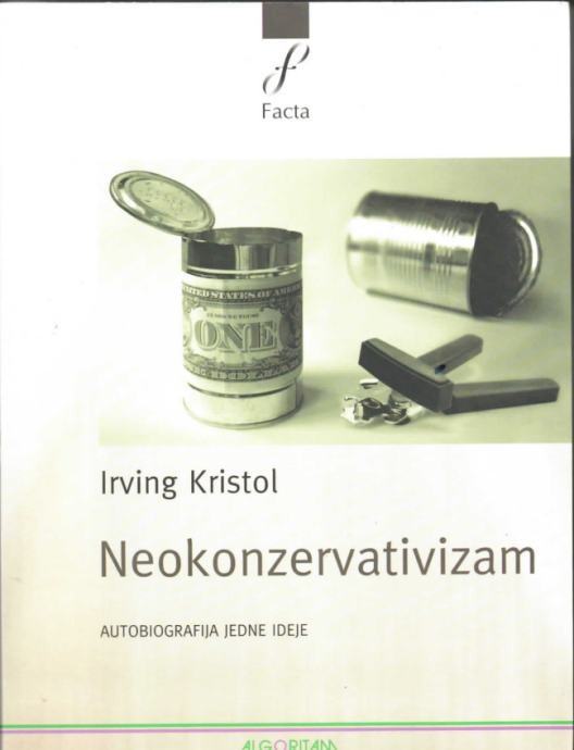 Pokret koji zovemo neokonzervativizmom ponikao je među američkim liberalima, podjednako iz negodovanja nad izvornim, rigidnim konzervativizmom staroga kova, koliko i iz razočaranja ljevicom i ideološkog neprijateljstva spram Sovjetskog Saveza. Irving Kristol, utjecajni intelektualac i ugledni izdavač i publicist, u mladosti i sam radikalni socijalist, tijekom pedesetih godina profilirao se kao jedan od glavnih rodonačelnika neokonzervativističkog sustava mišljenja. Svojim je esejima i člancima o politici, ekonomiji, društvu, religiji, kulturi, književnosti, obrazovanju i ponajviše o "vrijednostima", doslovce definirao neokonzervativisticku kritiku suvremenoga života i doprinio razvoju neokonzervativizma među čitavom generacijom američkih intelektualaca. Jednako tako, taj je svjetonazor presudno sudjelovao u oblikovanju ideje "trećeg puta" među europskom socijaldemokracijom.Stranica: 534Dimenzije: 17x23 cmJezik: ZagrebPismo: LatinicaStanje: Nova knjigaUvez: MekiGodina: 2004