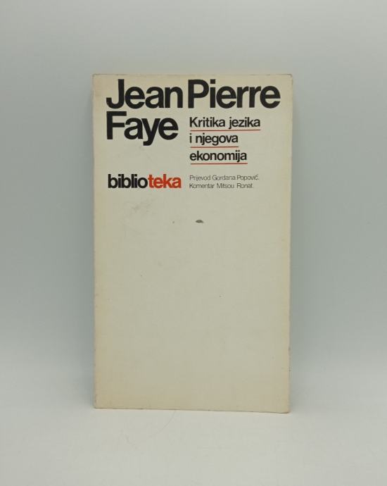Jean Pierre Faye: Kritika jezika i njegova ekonomijaoprema Zoran PavlovićStranica: 79Dimenzije: 13.5x23Jezik: ZagrebPismo: LatinicaStanje: OdličnoUvez: MekiGodina: 1973