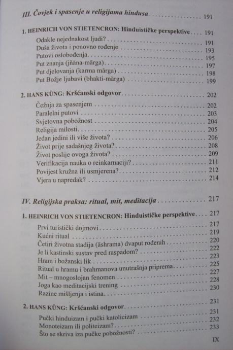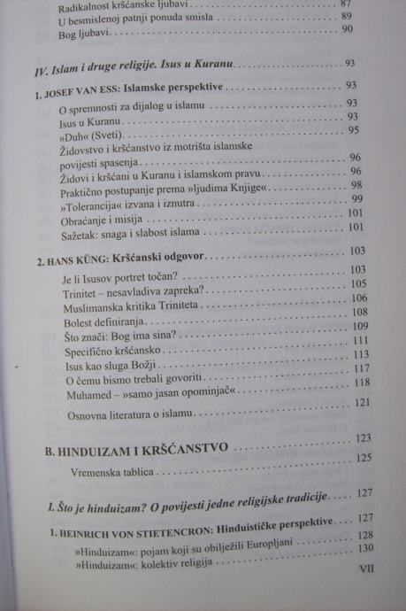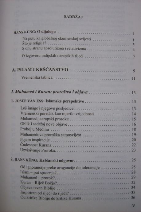 U ovoj knjizi Hans Küng govori o potrebi širenja obzora razumijevanja i obaviještenosti među religijama. Nadalje govori da će uzajamna informacija, uzajamna diskusija i uzajamna transformacija dovesti do uzajamnoga kritičkog rasvjetljavanja, poticanja, prožimanja i obogaćivanja različitih religijskih tradicija.