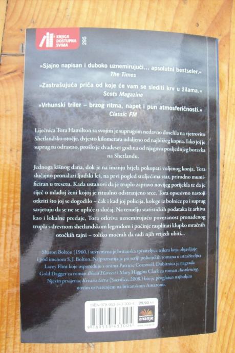 Liječnica, specijalistica ginekologije i porodništva, Tora Hamilton sa svojim je suprugom nedavno doselila na vjetrovito Shetlandsko otočje, dvjesto kilometara udaljeno od najbližeg kopna. Premda joj je suprug tu odrastao, prošlo je dvadeset godina od njegova posljednjeg boravka na Shetlandu. Dok je jednoga kišnog dana htjela pokopati voljenog konja, Tora slučajno pronalazi ljudski leš, na prvi pogled stoljećima star, prirodno mumificiran u tresetu. Kada ustanovi da truplo zapravo nije staro te da je riječ o mlađoj ženi, kojoj je ritualno odstranjeno srce, Tora opsesivno nastoji otkriti što joj se dogodilo – čak i kad joj policija, kolege iz bolnice pa i suprug savjetuju da se ne se upliće u slučaj. Na temelju statističkih podataka iz bolnice, gradskog arhiva kao i lokalne predaje, Tora otkriva uznemirujuću povezanost pronađenog trupla s drevnom shetlandskom legendom i počinje rasplitati klupko mračnih otočkih tajni – toliko moćnih da radi njih
