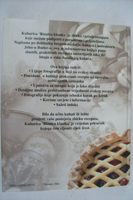 Zabilješke: Kuharica "Riznica klasika" je zbirka vječnih recepata koje možete podijeliti s obitelji i prijateljima. Napisana po dobitniku brojnih medalja, kuharu i instruktoru Johnu Butleru, ova je informativna knjiga puna slasnih, praktičnih recepata sastavljenih tako da imaju u vidu današnjeg kuhara.