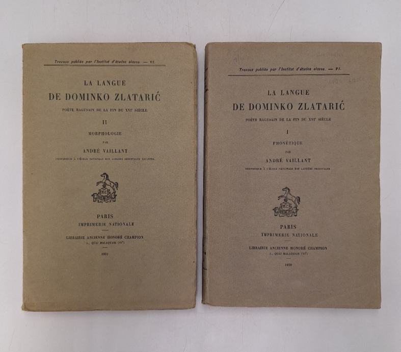 Andre Vaillant: La langue de Dominko Zlataric, poète ragusain de la fin du XVIe siècle I-IIPisano na francuskom.Stranica: 368+395Dimenzije: 16.5x25.5Jezik: ParizPismo: LatinicaStanje: DobroGodina: 1928