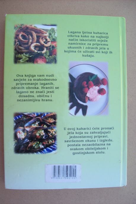 Lagana ljetna kuharica otkriva kako na najbolji način iskoristiti svježe namirnice za pripremu ukusnih i zdravih jela u kojima će uživati svi koji ih kušaju. Ova knjiga vam nudi savjete za svakodnevno pripremanje laganih zdravih obroka. Hraniti se lagano ne znači jesti dosadnu, običnu i nezanimljivu hranu. U ovoj kuharici ćete pronaći jela koja su zahvaljujući jednostavnoj pripravi, savršenom okusu i izgledu, postala nezaobilazna na svakom obiteljskom i gostinjskom stolu.