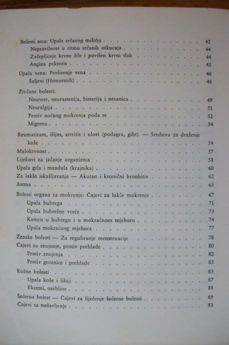 Iz predgovora: “…Ova knjiga nije udžbenik. To je praktičan priručnik za svakoga. Pisan je na zahtjev građana. Biljna apoteka Instituta za proučavanje ljekovitog bilja u Beogradu svakodenevno dobiva stotine pisama bolesnika iz svih krajeva Jugoslavije koji traže biljne lijekove i jednostavna uputstva o pripremanju ljekovitih čajeva u domaćinstvu….”