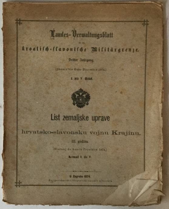 LIST ZEMALJSKE UPRAVE ZA HRVATSKO-SLAVONSKU VOJNU KRAJINU , III. GODIN