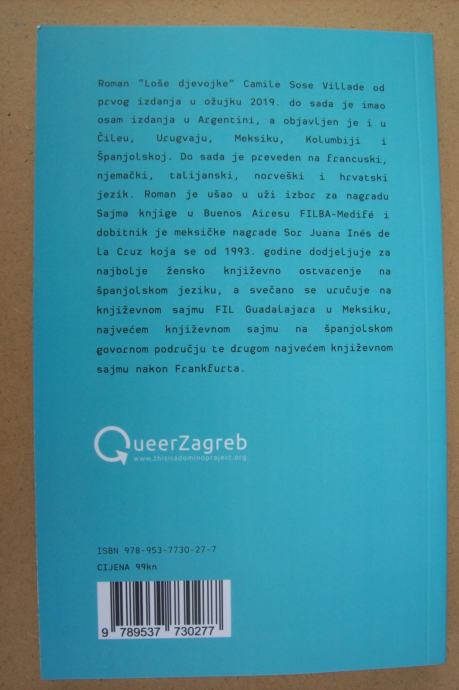 Loše djevojke autobiografska je priča o 19-godišnjoj trans ženi koja se doseljava u veliki grad i pridružuje skupini trans seksualnih radnica. Ovaj nagrađivani roman istovremeno je bajkovit i strašan – nudi intiman grupni portret i eksplozivni manifest transrodnog društva. U njemu se spajaju dva trans lica koja odbijaju i užasavaju malograđansko društvo: trans-bijes i trans-zabava. Camila Sosa Villada kao spisateljica istražuje rodni identitet i bavi se pitanjima perspektive seksualnosti i njezine važnosti u današnjem globalnom svijetu.