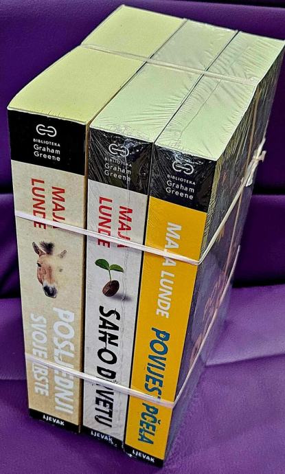 San o drvetu - „Zastrašujući i potresan završetak klimatske kvadrilogije u kojem Maja Lunde postavlja pitanje čovjekove odgovornosti za sudbinu našeg planeta, ali i sugerira neke odgovore.“ Jönköpings-Posten (Švedska)Povijest pčela - Epska priča u kojoj se susreću prošlost, sadašnjost i budućnost, koja ispituje čovjekov odnos prema religiji, znanosti, no u prvom redu prema prirodi – priča o tome kako čovjekova interakcija i s najmanjim bićima može presudno utjecati na to hoćemo li opstati kao ljudska vrsta ili nećemo. Povijest pčela roman je s globalno relevantnom temom s obzirom na stanje suvremenog svijeta ugroženog klimatskim promjenama što se odvijaju sve bržim tempom. U pozadini ove opće teme tri su snažne, intimne priče o odnosu između roditelja i djece. Ono što je zajedničko trima glavnim likovima – biologu i trgovcu sjemenjem Williamu, koji živi u Engleskoj sredinom 19. stoljeća, i koji je konstruirao novi tip košnice; pčelaru Georgeu, koji živi u Americi sredinom 20. stoljeća i vodi unaprijed izgubljenu bitku u uzgoju pčela suočen s modernom agrikulturom; Kineskinji Tao, koja živi u Kini krajem 21. stoljeća, u vrijeme kad su pčele već izumrle – jest to da su spremni učiniti sve da bi njihova djeca imala život bolji od njihova.Posljednji svoje vrste - Nakon međunarodnih bestselera Povijest pčela i Plavetnilo, treći roman u „Klimatskoj tetralogiji“ Maje Lunde priča je o ljudima, životinjama i ljudskim životinjama. Kako na nas utječu ostale vrste na Zemlji? Što nas razlikuje od životinja? Ima li još vremena da ispravimo svoje pogreške? I što je potrebno učiniti kako bismo preživjeli? Posljednji svoje vrste nominiran je 2019. godine za Nagradu norveških knjižara, a Naklada Ljevak predstavlja vam ga u prijevodu Vesne Salomonsen.Dimenzije: 13,8 x 21,5Jezik: ZagrebPismo: LatinicaStanje: Nova knjigaUvez: MekiGodina: 2024