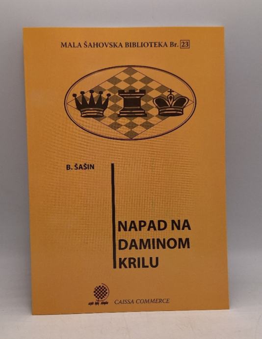 B. Šašin: Napad na daminom krilu br. 23U knjizi autor na popularan način piše o zanimljivom strateškom problemu - igri na daminom krilu. Na mnogim primjerima iz klasičnih i novijih igara prikazane su karakteristike igre na daminom krilu. Knjiga je namijenjena širokom krugu čitatelja. Stranica: 88Dimenzije: 14x20Jezik: BeogradPismo: LatinicaStanje: Nova knjigaUvez: MekiGodina: 2005