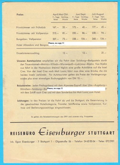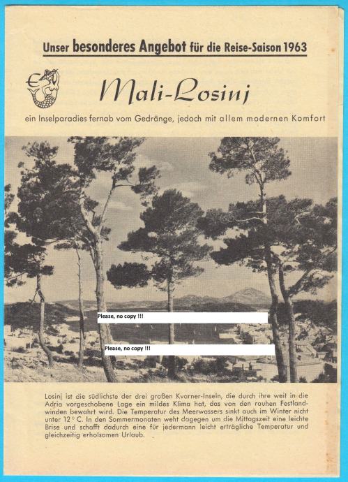 MALI LOŠINJ posebna ponuda za sezonu putovanja 1963.g. stara brošura