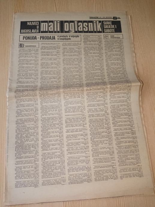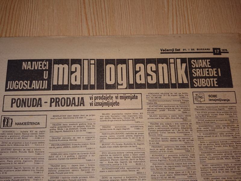 Novine: Mali oglasnik, Večernji List, 21.i.22.01, 1978.g.