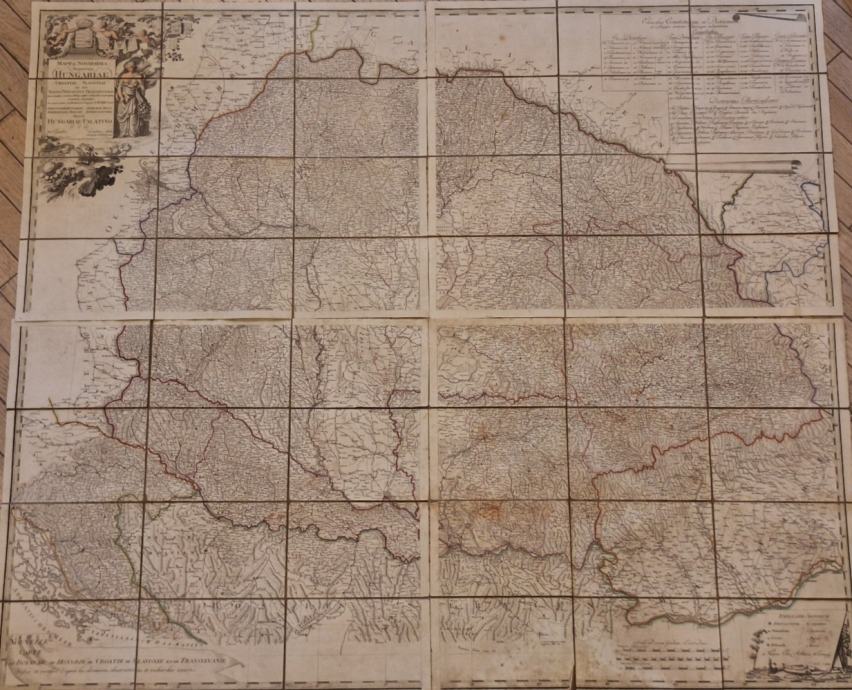 Mappa novissima regnorum Hungarie, Croatiae, Sclavoniae nec non magni principatus Transylvaniae ... serenissimo Hungariae et Bohemiae regio haereditorio principi et archiduci Austriae Alexandro Leopoldo : Nouvelle carte du Royaume de Hongrie de Croatie de Slavonie et de Transylvanie dressée et rectifiée d' aprés les dérniéres observations et recherches exactes / F. Müller sculpsitVrlo rijedak Lipszkyev zemljovid, kaširan u četiri dijela.Iznad kartuše nalaze se grbovi Hrvatske, Dalmacije i SlavonijeLIPSKÝ, Ján (Lipszky von Szedlicsna; Johann, Johannes, János), kartograf (Sedličná, danas dio Trenčianskih Stankovaca, 10. IV. 1766 — Sedličná, 2. V. 1826). Školovao se u pijarista u Trenčinu te završio vojnu akademiju u Bečkom Novom Mjestu 1783. U vojnoj službi Habsburške Monarhije napredovao do čina pukovnika (1809). Služeći se podatcima M. D. Bogdanića, izradio je sadržajem vrlo bogat zemljovid Ugarske i susjednih zemalja (Mappa generalis Regni Hungariae partiumque adnexarum Croatiae, Slavoniae et Confinionum militarium, Magni item Principatus Transylvaniae. Pešta 1805, 1806, Prag 1849), jedan od najboljih toga doba, sastavljen od 12 sekcija u mjerilu 1 : 480 000. Izradio i zemljovide Conspectus generalis partium politico-militarium Regni Hungariae (Pešta 1804) i Charte zur Übersicht der von Lipszky’schen Charte von Ungarn (Weimar 1806), 1806–18. zemljovid Ugarske, Transilvanije, Hrvatske i Slavonije s popisom naselja te Tabula generalis Regni Hungariae, Croatiae et Slavoniae, nec non Magni Principatus Transylvaniae (Pešta 1810, Prag 1827, 1848) u mjerilu 1 : 1 400 000. Spominje se i kao suautor zemljovida Mappa Dioecesium Bosnensis seu Diakovariensis et Syrmiensis (Pešta 1826). Stranica: 4Dimenzije: 122x104Jezik: AustrijaPismo: LatinicaStanje: Vrlo dobroUvez: TvrdiGodina: 1792