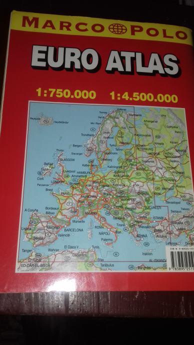 Marco Polo Euro Atlas, 1:750,000 i 1:4,500,000, u odličnom stanju.