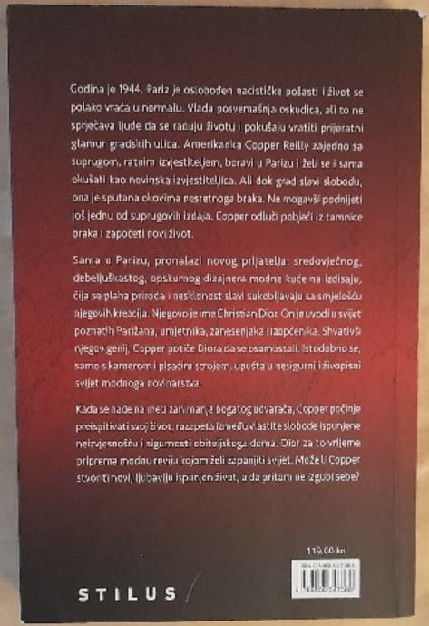 Radnja je smještena u poslijeratni Pariz 1944. godine, a prati Amerikanku Copper Reilly koja, nakon što odluči pobjeći od suprugova varanja, počinje novi život u gradu koji se tek oporavlja od nacističke okupacije. U Parizu upoznaje Christiana Diora, mladog i siromašnog dizajnera modne kuće na izdisaju, te postaje svjedok njegova nevjerojatnog uspona. Roman spaja povijest visoke mode, slobode i osobnog preporoda u živopisnoj atmosferi poslijeratnog Pariza. Marius Gabriel poznat je kao autor svjetskog bestselera Pariždanke.