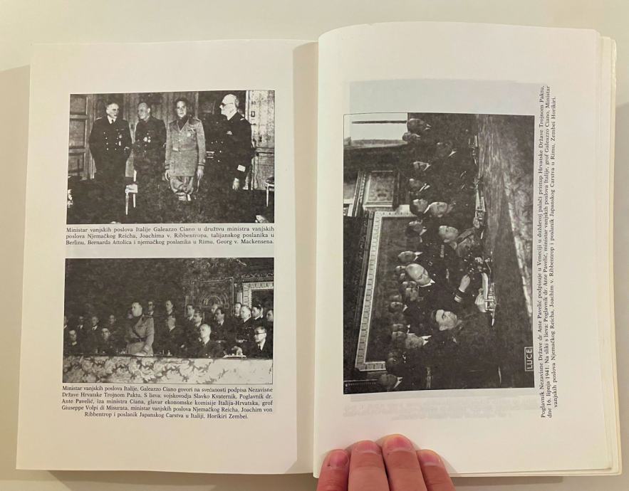 Marko Sinovčić je Hrvat koji nakon pada N.D.H. provodi neko vrijeme u internaciji u četničkom logoru Cesena u Italiji, a nakon toga živi u progonstvu u Argentini. Ovu knjigu je napisao u želji da, kako on kaže, rasvijetli neka događanja u vrijeme N.D.H. i oko N.D.H. To čini tako da nam predočava neke dokumente iz dnevnika Ciana Galeazza, inače zeta Benita Mussolinija, talijanskog ministra vanjskih poslova od 1936. do 1943. godine i člana Velikoga fašističkog vieća, kojeg je Benito Mussolini dao strijeljati nakon njegova sudjelovanja u neuspjelom državnom udaru. Ciano Galeazzo pisao je dnevnik, a imao je i svoj tajni arhiv s dragocjenim dokumentima toga vremena. Oni nam govore kako su se Hitler i Mussolini odnosili u tom razdoblju prema Hrvatskoj, a kako prema Srbiji, te daju dosta podataka iz vremena nastajanja N.D.H..