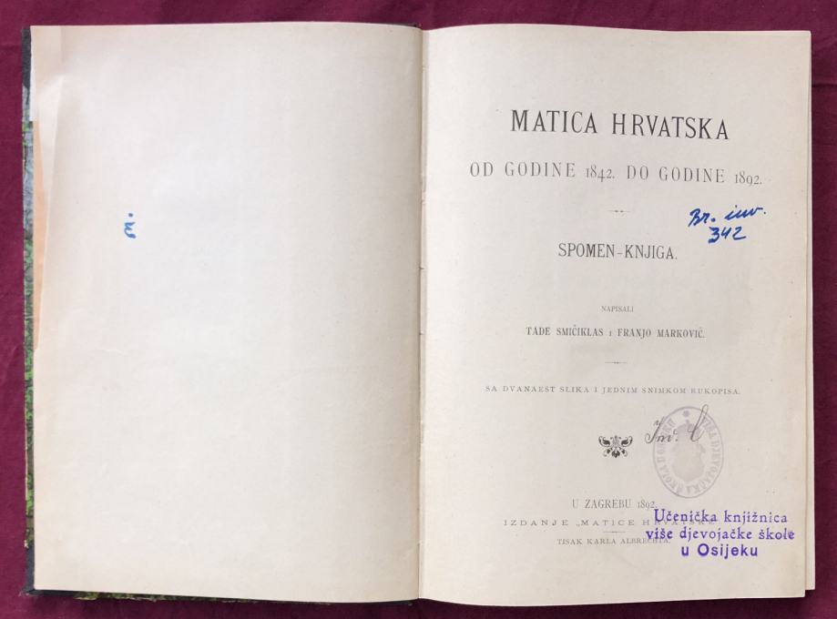 MATICA HRVATSKA 1842-1892.