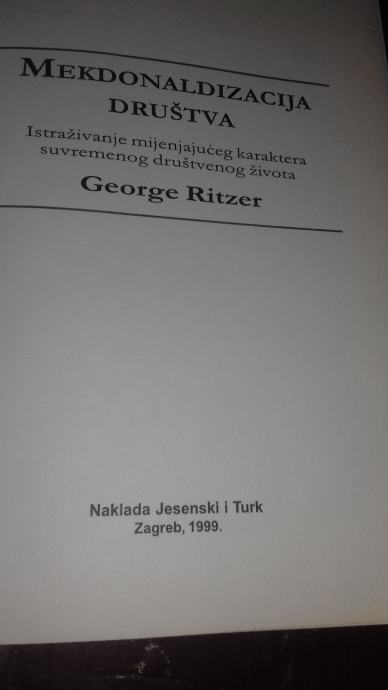 McDonaldizacija društva, George Ritzer - 1999. godina.