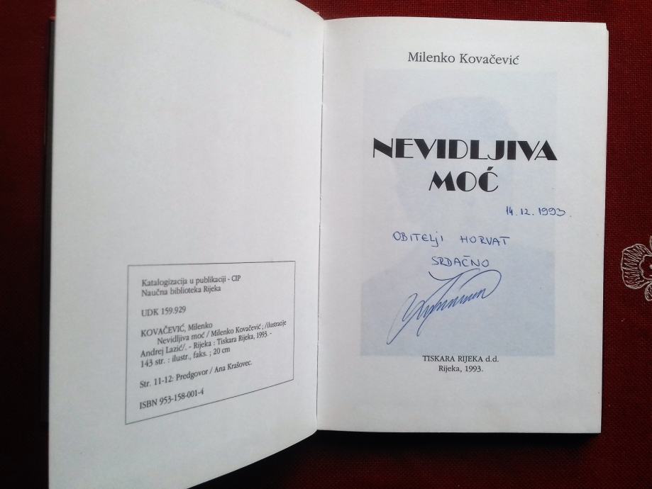 Milenko Kovačević Nedvidljiva moć, RIJEKA 1993, POTPIS AUTORA