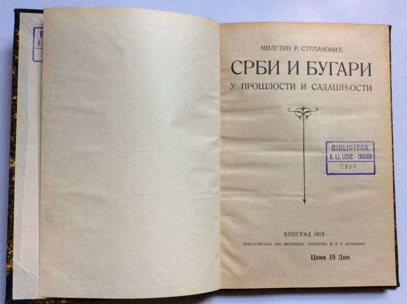 MILUTIN STEPANOVIĆ, SRBI I BUGARI U PROŠLOSTI I SADAŠNJOSTI, LJUBLJANA
