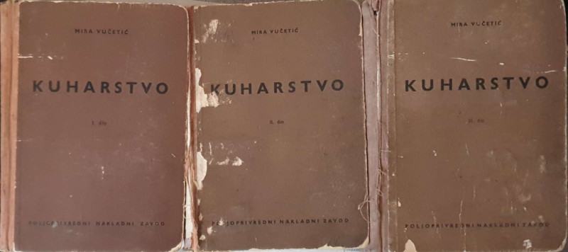 Mira Vučetić: Kuharstvo I-IIITradicionalna, klasična i temeljita kuharica s gotovo tisuću i pol recepata i savjetima za domaćinstvo.