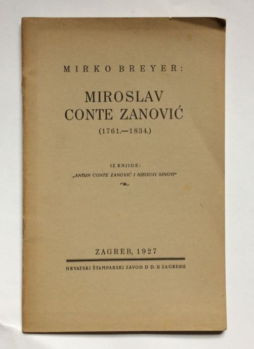 MIRKO BREYER, MIROSLAV CONTE ZANINOVIĆ, SEPARAT, POSVETA AUTORA, ZAGRE
