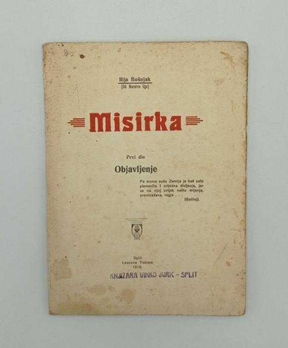 Ilija Bošnjak (od Neretve Ilija): MisirkaPrvi dioObjavljenje Stranica: 80Dimenzije: 16x22Jezik: SplitPismo: LatinicaStanje: DobroUvez: MekiGodina: 1919