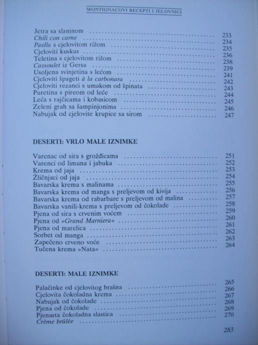 Vi koji ste, proučivši temeljni priručnik već prihvatili načela Montignacove metode, uz ovu ćete knjigu recepata doista uživati u kuhanju. Ona će pomoći svima kojima, ma kako maštoviti bili, ponestane nadahnuća. Usto, knjiga će vam pomoći da neka jela koja su se ustalila na vašim trpezama, i vi ih se s pravom ne želite odreći, prilagodite načelima metode i novom režimu prehrane. Postići ćete to bez velikih «potresa» pokojim zamjenskim sastojkom ili odabirom drugog priloga.
