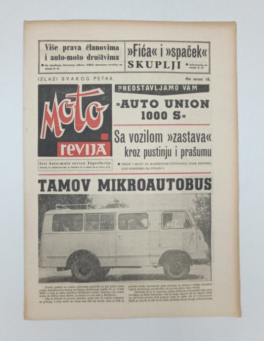 Moto revija br. 136/1962List Auto-moto saveza JugoslavijeUrednik: Milivoje VukovićStranica: 15Dimenzije: 29x40Jezik: BeogradPismo: LatinicaStanje: DobroUvez: MekiGodina: 1962