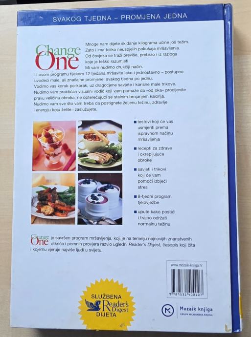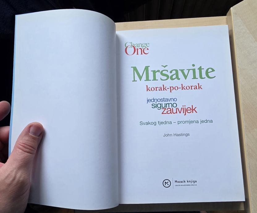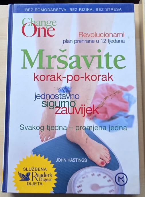 Prodajem knjigu "Mršavite korak-po-korak" autora Johna Hastingsa, izdanje iz serije Change One. Radi se o revolucionarnom planu prehrane u 12 tjedana s pristupom svakog tjedna – promjena jedna. Knjiga nudi praktične savjete i recepte, a objavila ju je Mozaik knjiga. Službena je Reader's Digest dijeta.