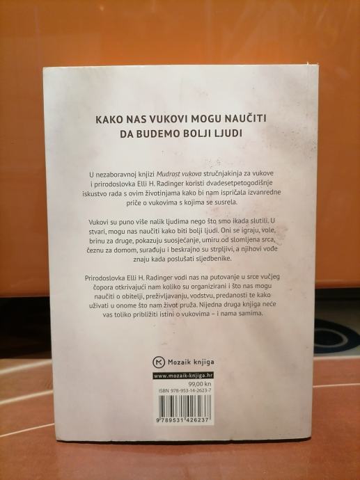 U nezaboravnoj knjizi Mudrost vukova stručnjakinja za vukove i prirodoslovka Elli H. Radinger koristi dvadesetpetogodišnje iskustvo rada s ovim životinjama kako bi nam ispričala izvanredne priče o vukovima s kojima se susrela.