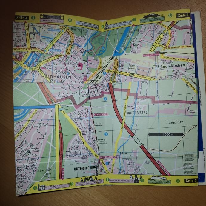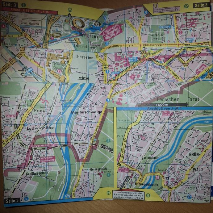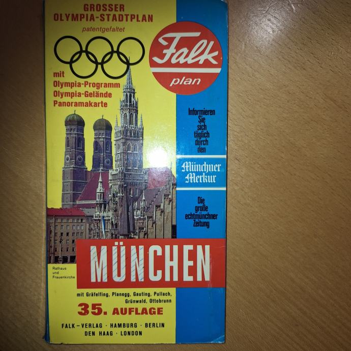 Na prodaju plan grada Munchen-a iz 1973. godine s prikladnim motivima Olimpijskih igara koje su se tamo te godine održavale.