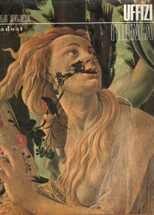 Povijest Galerije Uffizi u mnogočemu je povijest zbirki obitelji Medici i obitelji koja je došla poslije njih, Lorena. Galerija je, unatoč preinakama i promjenama, sačuvala svoj prvotni posebni karakter koji u sebi sintetizira politička zbivanja, obiteljske događaje i kulturne odabire apsolutne moći koja je, iskreno se identificirajući s toskanskom kulturom kao i s firentinskom, potrajala tri stoljeća i dvije dinastije. Obogaćen kroz stoljeća mirazima, nasljedstvima, razmjenama i kupnjom, muzej se postupno pretvarao u galeriju slika. Uffizi je danas jedna od najvećih zbirki talijanskog i europskog slikarstva XII. do XVIII. stoljeća. Galerija sadrži i druge vrlo dragocjene zbirke koje odražavaju interese raznih članova dviju kraljevskih obitelji Toskane: minijature, antičke statue, autoportrete, portrete slavnih ličnosti, grafike itd. Šetnja kroz Uffizi predstavlja za svakog estetsko i kulturno iskustvo neprocjenjive vrijednosti. Hodajući kroz dvorane galerije koje se nižu kroz dva paralelna krila zdanja što se sjedinjuju uz Arno, možemo se diviti, u kronološkom rasporedu i podjelom po školama, sekvenci remek-djela čiji su autori Cimabue, Giotto, Botticeli, Simone Martini, Masaccio, Piero della Francesca, Durer, Michelangelo, Pontorno, Tizian, Carvaggio i Rembrandt.Stranica: 170Dimenzije: 20x26 cmJezik: ZagrebPismo: LatinicaStanje: DobroUvez: TvrdiGodina: 1971