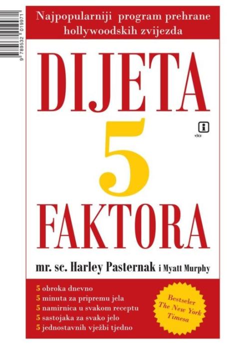 Dijeta 5 faktora revolucionaran je program prehrane i vježbi prema kojem svoja tijela oblikuju neke od najljepših i najpoznatijih hollywoodskih zvijezda – Halle Berry, Eva Mendes, Rachel Weisz, Robert Downey Jr., Brendan Fraser, Benjamin Bratt, Alicia Keys…Autor Dijeta 5 faktora Harley Pasternak osmislio je jedinstven program prehrane i vježbi koji vam omogućuje da u kratkom vremenu izgubite prekomjerne kilograme. Pritom nećete gladovati niti se odricati hrane, već ćete biti u izvrsnoj formi i puni energije.Dijeta 5 faktora jedna je od najjednostavnijih dijeta i moći ćete je bez problema provoditi uvijek i svugdje. Odaberite namirnice 5 faktora koje vam se najviše sviđaju i pripremajte ukusna jela prema brzim i jednostavnim receptima iz knjige – i prekomjerni kilogrami počet će se topiti. Sjajna je stvar što svaki tjedan imate i jedan »dan za kršenje pravila« kad možete uživati u hrani za kojom žudite.Stranica: 272Dimenzije: 15,5 x 23,5Jezik: ZagrebPismo: LatinicaStanje: Nova knjigaUvez: MekiGodina: 2009