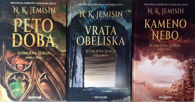 Prva knjiga -Peto dobaDruga knjiga-Vrata obeliskaTreća knjiga-Kameno neboNora. K. Jemisin je autorica kratkih priča i romana u žanru spekulativne fikcije koja živi i piše u Brooklynu u New Yorku. Godine 2018. postala je prva autorica u povijesti koja je osvojila nagradu Hugo za najbolji roman tri godine zaredom, sve za svoju trilogiju o slomljenoj Zemlji. Uz to je dobitnica nagrada Locus i Nebula, a 2020. godine postala je stipendistica zaklade MacArthur. Stranica: 394,351,355Jezik: hrvatskiStanje: OdličnoUvez: TvrdiGodina: 2021