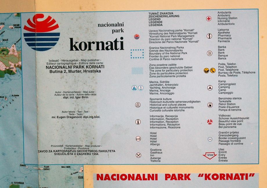 NACIONALNI PARK KORNATI Karta 1:50 000 Hrvatski zemljopis 1997