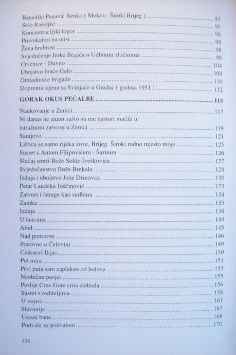 Glavni protagonist i autor knjige kroz gotovo čitav svoj život nailazi na nedaće počev od djetinjstva kada je kao desetogodišnjak nemilosrdno mučen od partizana, pa sve do zrelih godina kada ga u emigraciji zlostavljaju Udbini plaćenici.”
