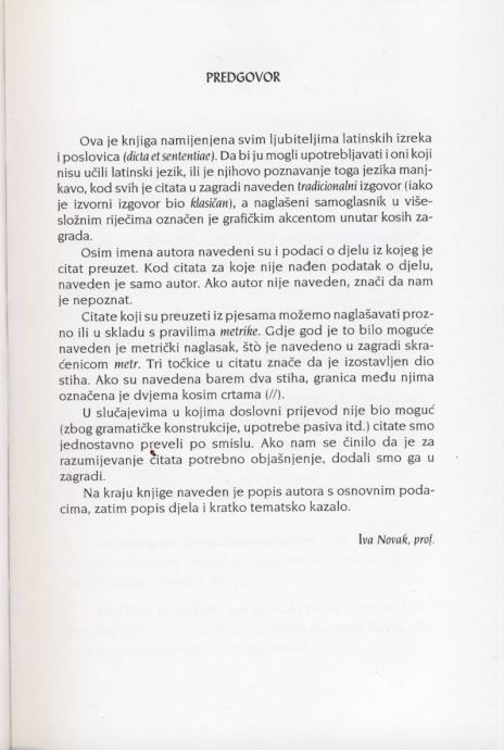 Ova je knjiga namijenjena svim ljubiteljima latinskih izreka i poslovica (dicta et sententiae).