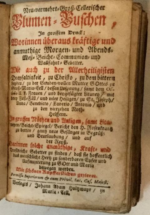 Neu vermehrt Groff Csellerischer Blumen Buschen, stari molitvenik s po