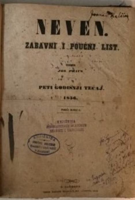 NEVEN, ZABAVNI I POUČNI LIST GOD. 1856. (PETI GODIŠNJI TEČAJ) BROJEVI
