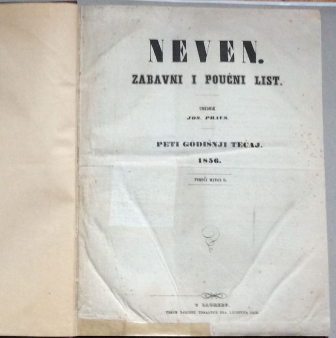 NEVEN, ZABAVNI I POUČNI LIST, PETA GODINA, ZAGREB, 1856.