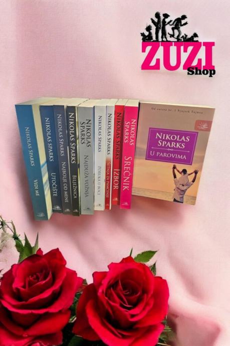 Najduža vožnjaNeobična priča o putovanju u najudaljenije kutove ljudskog srca.Ira Levinson je u nevolji. Devedesetjednogodišnjak, narušenog zdravlja i sam na svijetu, nakon prometne nesreće našao se na pustom nasipu. Teško ozlijeđen, bori se da ostane pri svijesti dok mu se pojavljuje maglovita slika - iznenada pored sebe ugleda svoju voljenu ženu Ruth, devet godina od njezine smrti. Ira zna da Ruth nikako ne može biti uz njega u autu, ali drži se svojih riječi i svojih sjećanja te ponovno proživljava tuge i radosti koje su obilježile njihov brak.Nekoliko kilometara dalje, na rodeu, studentica Sofia Danko doživjet će veliku promjenu u svom životu. Oporavljajući se od nedavnog prekida s dečkom, upoznaje mladog kauboja Lukea, koji nema mnogo toga zajedničkog s privilegiranim mladićima koje Sofia sreće u školi. Luke je uvodi u svijet u kojem je mnogo toga na kocki: opstanak i uspjeh, neuspjeh i priznanje – čak i život i smrt. Dok ljubav cvjeta između nje i Lukea, Sofia zamišlja budućnost vrlo različitu od njezinih prijašnjih planova, budućnost koju Luke može ostvariti... ako je njegova tajna prije toga ne uništi.Ira i Ruth. Sofija i Luka. Dva para koji imaju malo toga zajedničkog, a razdvajaju ih godine i iskustvo. Njihovi će se životi ipak ispreplesti s neočekivanom žestinom, podsjećajući nas sve da nas čak i najteže odluke mogu odvesti na nevjerojatna putovanja – onkraj beznađa, onkraj smrti, do najudaljenijih granica ljudskog srca.Šetnja za pamćenjeGodina je 1958. i sedamnaestogodišnji Landon uživa u svojoj divljoj mladosti: izlazi s mnogim djevojkama, a nekima čak i izjavljuje ljubav. On je njezina potpuna suprotnost, Jamie Sullivan, kći lokalnog svećenika, koja se brine za svog oca, ne odvaja se od Biblije ni u školi i volontira u sirotištu. Ali sudbina će umiješati svoje prste. Kad budu prisiljeni prisustvovati školskom plesu kao partneri, Landon i Jamie otkrit će strastvenu ljubav i osjetiti ogroman gubitak. Sljedećih mjeseci Landon će spoznati prave razmjere ljudske dobrote i donijeti odluku koja će mnoge iznenaditi, a njega nepovratno odvesti u surov svijet odraslih.Ovo je možda Sparksov najpoetičniji roman i svidjet će se i najizbirljivijem čitatelju. Kako sam autor kaže: “Prvo ćeš se razniježiti, a onda ćeš plakati – nemoj reći da te nisam upozorio”."Kroz Landonov obred prijelaza iz neodgovorne mladosti u nesebičnog čovjeka punog ljubavi, Sparks ponovno potvrđuje da je majstor u probijanju stupova duše." BooklistBilježnicaNoah već preko godinu dana živi u kući koju je kao mladić odlučio kupiti, ostvario je tu želju i temeljito ju obnovio. Živi mirno i povučeno, radeći cijeli dan na imanju tek povremeno se osjećajući usamljeno. A to je kad pomisli na Allie. Allison pak, tri tjedna prije udaje za pravog joj para, uspješnog i imućnog Lona, ne može odagnati nemir koji je u nju uselio od kada je pročitala članak o renoviranju kuće koja joj je i te kako bila poznata iz mladosti. Stoga odluči otputovati i suočiti se s Noahom, ne bi li tako raskrstila s time zauvijek. Međutim, njihov ponovni susret, nakon četrnaest godina, na površinu postepeno propušta neke stare osjećaje... Po ovom je romanu 2004. godine Nick Cassavetes snimio film s Rachel McAdams i Ryan Goslingom u glavnim ulogama.Poruka u bociBroj jedan na listi najprodavanijih romana New York Timesa.Nicholas Sparks, autor bestselera New York Timesa, donosi nam još jednu nezaboravnu priču o ljudskim sudbinama i potrebi da se pronađe prava ljubav. Poruka u boci upoznaje nas s Teresom Osborne, novinarkom slomljenog srca, čiji će se život potpuno promijeniti kada jednog dana na plaži pronađe bocu s dirljivim ljubavnim pismom. Želja da pronađe čovjeka koji je napisao te lijepe misli odvest će je do šutljivog Garretta, muškarca njezina života.Najbolje od meneDawson Cole imao je teško djetinjstvo, majka ga je napustila, a otac ga je zlostavljao dok konačno nije umro od alkohola. Amanda Collier dolazila je iz bogate obitelji, bila je predsjednica razreda i navijačica. Sa sedamnaest godina bili su strastveno zaljubljeni i Dawson je bio siguran da s Amandom želi provesti ostatak života. Ipak, životni putevi će im se vrlo brzo razdvojiti, a do ponovnog susreta neprežaljenih ljubavnika proteći će dvadeset i pet godina. Sada imaju jedan vikend da ožive bolne uspomene, suoče se s posljedicama svojih odluka te saznaju može li ljubav promijeniti prošlost.SrećnikRoman temeljen na istoimenom filmu.Američki marinac Logan Thibault pronalazi fotografiju nasmijane mlade žene u pijesku u Iraku; njegov prvi poriv je da ga baci, ali iz nekog nepoznatog razloga nosi ga sa sobom. Ubrzo ga počinje pratiti neočekivana sreća - pobjeđuje na pokeru, preživljava okršaj za okršajem, čak i onaj najsmrtonosniji u kojem će poginuti dvojica njegovih prijatelja. Samo njegov najbolji prijatelj Victor misli da ima objašnjenje za to: ta je fotografija talisman i donosi sreću Thibautu.Nakon povratka u rodni Colorado, Thibault ne može izbaciti tu fotografiju iz glave. Uvjeren da žena na slici nekako drži ključ njegove sudbine, on kreće na dugo putovanje kako bi je pronašao, ali ne očekuje da će Beth, snažna, ali ranjiva žena koju upoznaje u Sjevernoj Karolini, biti upravo ona kojoj se nadao cijeli život. Između njega i Beth počinje cvjetati strastvena ljubav, no njegova tajna uskoro prijeti da ih rastavi.Srećnik je istovremeno nježna ljubavna priča i drama puna napetosti koja predstavlja Nicholasa Sparksa u njegovom najboljem izdanju - nezaboravan roman o iznenadnim stazama koje ponekad vode naši životi i moći sudbine da nas dovede do prave i trajne ljubavi.IzborTravis Parker ima sve što jedan muškarac može poželjeti: dobar posao, vjerne prijatelje, dom iz snova u šarmantnome malom gradu u Sjevernoj Karolini. Nastoji živjeti punim plućima, a pritom smatra da bi mu ozbiljna veza sa ženom samo staj