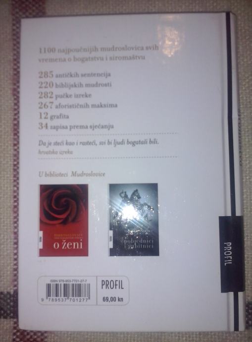 U mudroslovlju o bogatstvu i siromaštvu mnogo je suprotstavljenih, oprečnih pojmova koja odražavaju dilemu je li bolje imati ili biti, a u ovoj zbirci prikupljeno je ono najvažnije što su o toj dilemi mislili narodi, književnici, filozofi i najmudriji ljudi svoga vremena od antike do danas.