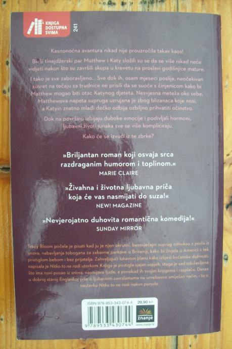 Kasnonoćna avantura nikad nije prouzročila takav kaos! Bivši tinejdžerski par Matthew i Katy složili su se da se više nikad neće vidjeti nakon što su završili skupa u krevetu na proslavi godišnjice mature. I tako je sve zaboravljeno... Sve dok ih, osam mjeseci poslije, neočekivan susret na tečaju za trudnice ne prisili da se suoče s činjenicom kako bi Matthew mogao biti otac Katynog djeteta. Nesvjesna meteža oko sebe, Matthewova napeta supruga uzrujana je zbog blizanaca koje nosi, a Katyin znatno mlađi dečko odbija ozbiljno prihvatiti očinstvo.