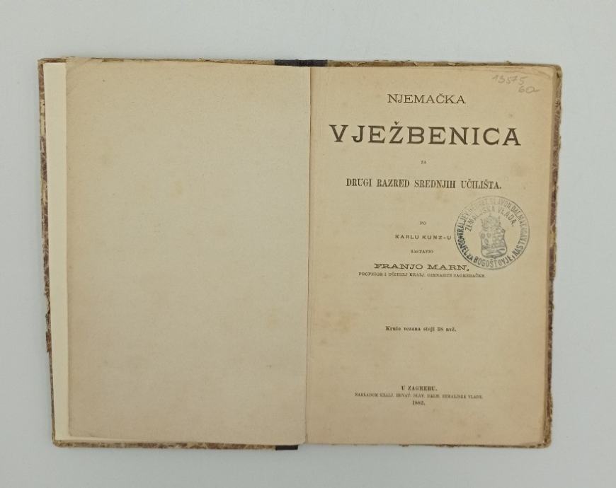 Franjo Marn: Njemačka vježbenica za drugi razred srednjih učilišta Stranica: 110Dimenzije: 14x22Jezik: ZagrebPismo: LatinicaStanje: DobroUvez: TvrdiGodina: 1882